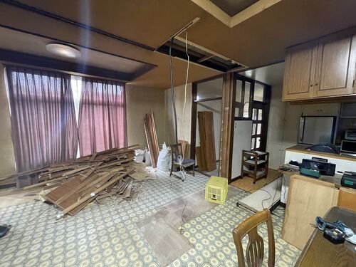 内装工事を始める前には、思ってる形になるように、まずは今ある内装で不要な部分を取り除いていく必要があります。 とりあえず天井はタイガーボード、床はタイルカーペットをはります。 所々の開口部は壁を作って埋めます。 解体した後の木口等の処理も必要…